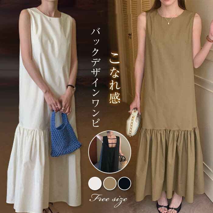 ワンピース レディース 夏 無地 ロングワンピース レディースワンピース コットン 綿 わた きれいめ フレア ノースリーブ 無地ワンピース エレガント 日常 20代 30代 40代 50代