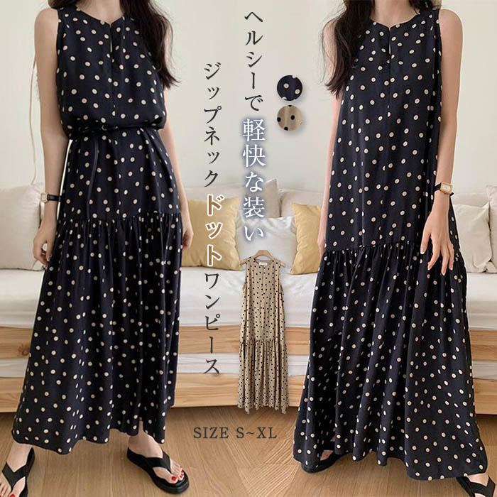 ドット ワンピース ロング ワンピース レディース 夏 ノースリーブ フレア ワンピース aライン ワンピース ドット柄 総柄 aラインワンピース フレアワンピース ロング マキシ丈 おしゃれ