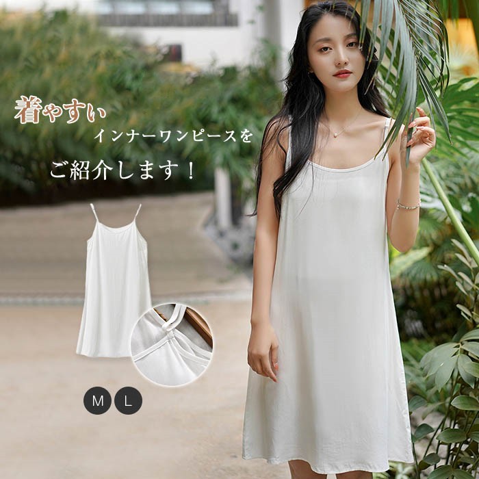 サラッとした肌ざわりで暑い季節に嬉しい ロングシーズン重宝するアイテムです インナーキャミワンピース 綿 キャミソール インナー キャミワンピ 肩紐調節可能 白 ホワイト 無地