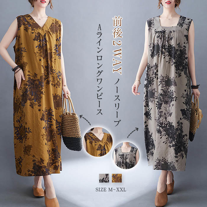 aライン ワンピース レディース 夏 ロングワンピース aラインワンピース ロングワンピ フレアワンピース ノースリーブ タンク 花柄 ゆったり 体型カバー 大人 カジュアル おしゃれ