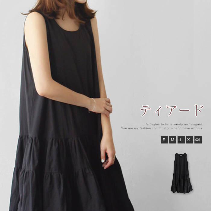 ティアード ワンピース ノースリーブ インナーワンピース aライン ワンピース レディース ロングワンピース ロングワンピ ノースリーブ タンク 切り替え ゆったり 体型カバー