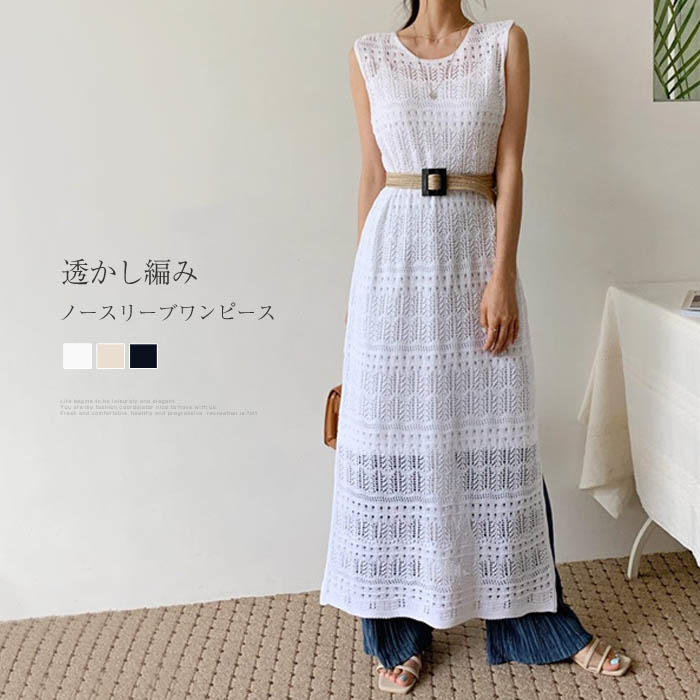 透かし編み ノースリーブ ワンピース 夏 夏ワンピース ロング マキシ レディースワンピース 夏ワンピ 薄手 トレンド カワイイ エレガント シンプル 日常 ディリー 30代 40代