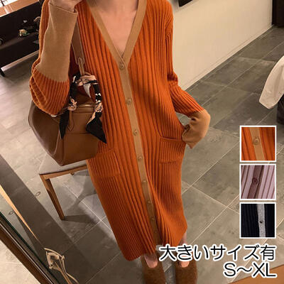 ニット ワンピース ロングワンピ Vネック バイカラレディースファッション ワンピース