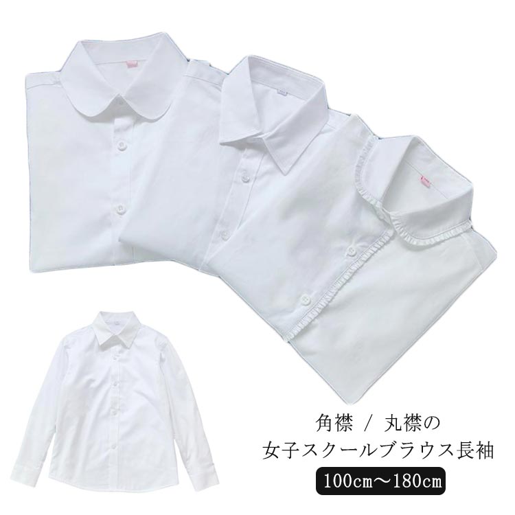 丸襟 女子 スクールブラウス スクールシャツ 長袖 カット 制服 ブレザー セーラー服 白 ホワイト 中学生 高校生 学生 スクールシャツ レディース
