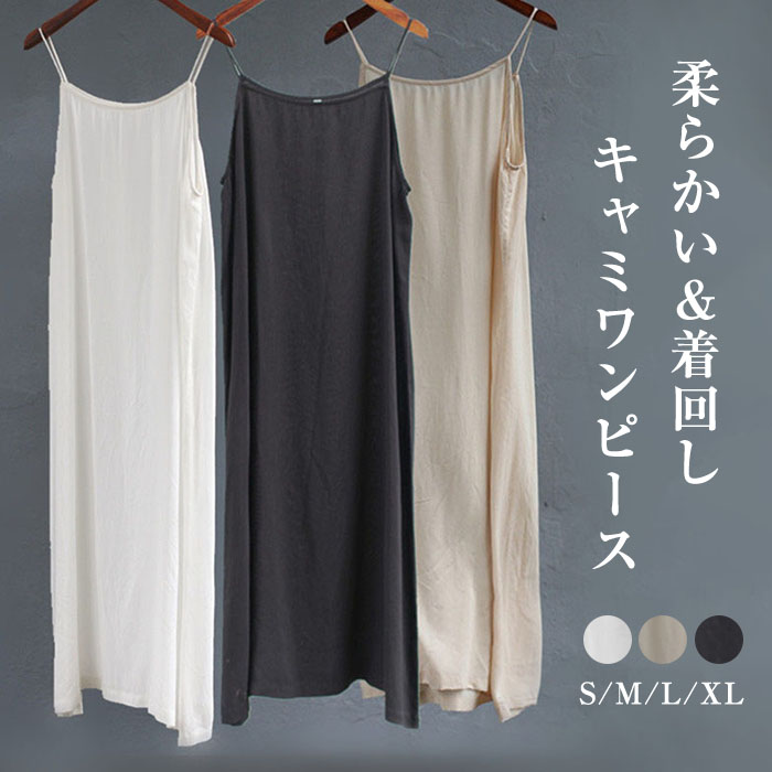 綿 キャミソールワンピース インナー ワンピース 膝丈 ノースリーブ キャミワンピース レディース 大きいサイズ 重ね着 レイヤード インナー
