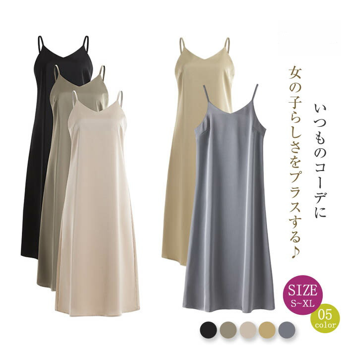 キャミワンピース レディース キャミソールワンピース インナー サテン ロングワンピース ミモレ丈 ノースリーブ 大きいサイズ 重ね着 レイヤード