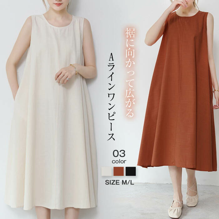 フレアワンピース ロング ノースリーブ ワンピース aライン レディース ミモレ丈 ロングワンピース ロングワンピ 綿麻調 フレア ワンピース タンク