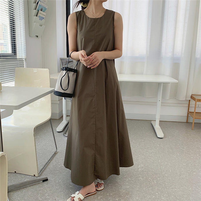 ノースリーブ ワンピース ロングワンピース レディース 綿麻調 フレア ワンピース 夏 aライン ワンピース 無地 着瘦せ 体型カバー 大きいサイズ