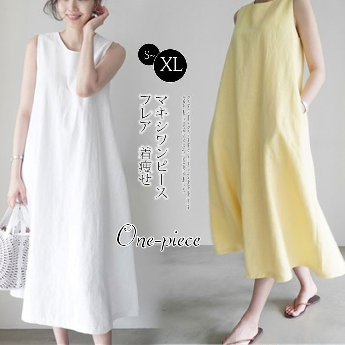 ワンピース レディース リネンワンピース ロングワンピ 綿麻調 aラインワンピース ノースリーブ タンク ノースリーブワンピース タンクトップワンピース