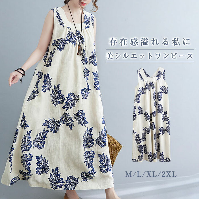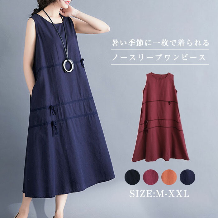 ノースリーブワンピース aライン ワンピース レディース ロングワンピース マキシ丈 ロングワンピ 綿麻調 ワンピース ノースリーブ タンク タンクトップワンピース