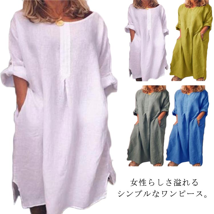 Cotton linen dress リネン ワンピース ロングワンピース フレアワンピース レディース ワンピース