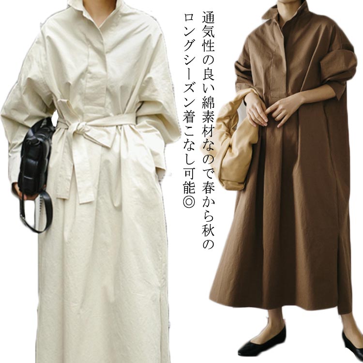 シャツワンピース シャツワンピ ワンピース レディース 長袖 ロング 綿100 体カバーレディースファッション ワンピース