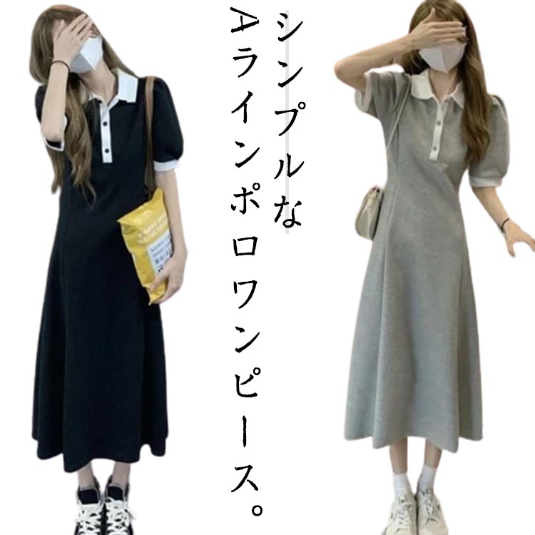 ポロワンピース フレアシルエット 春夏 半袖 ポロワンピ 大人 ミモレ丈 レディースレディースファッション ワンピース