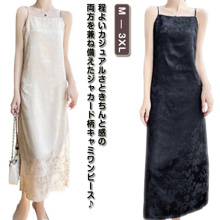 丈 キャミソールワンピース サテン キャミソールワンピース キャミワンピ 無地 絹 光沢感 ロングワンピース きれいめ セクシー シルク