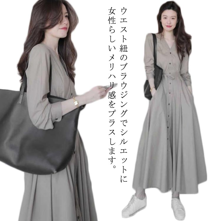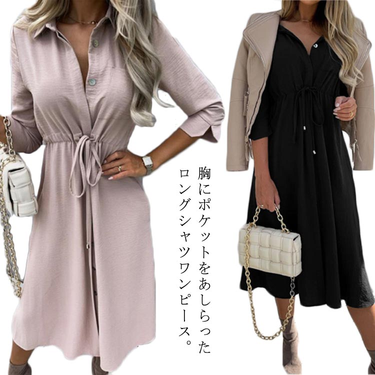 ワンピース ロング ライン 長袖 ロングワンピース シャツワンピース 無地 体型カバーレディースファッション ワンピース