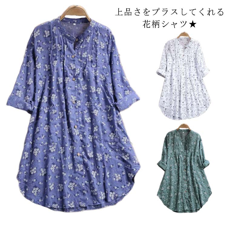 ブラウス ロング シャツ チュニック 羽織り 半袖 花柄 トップス 総柄レディースファッション ワンピース