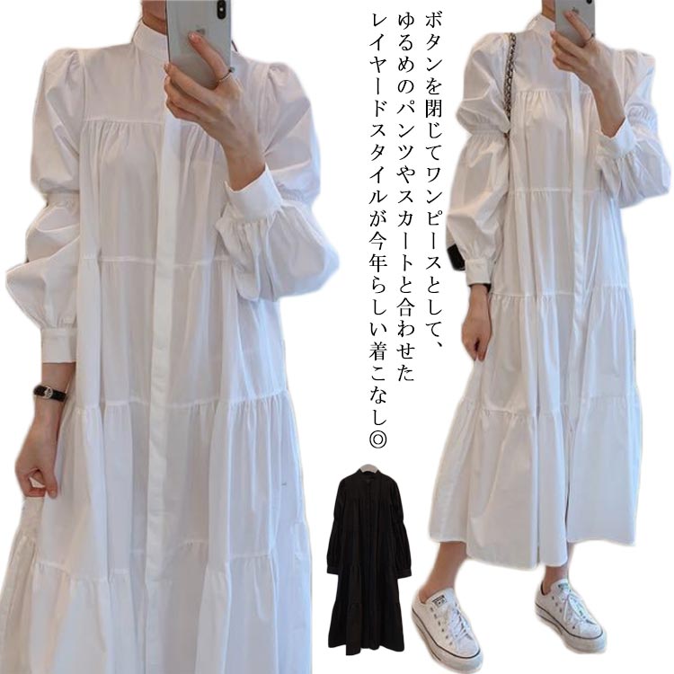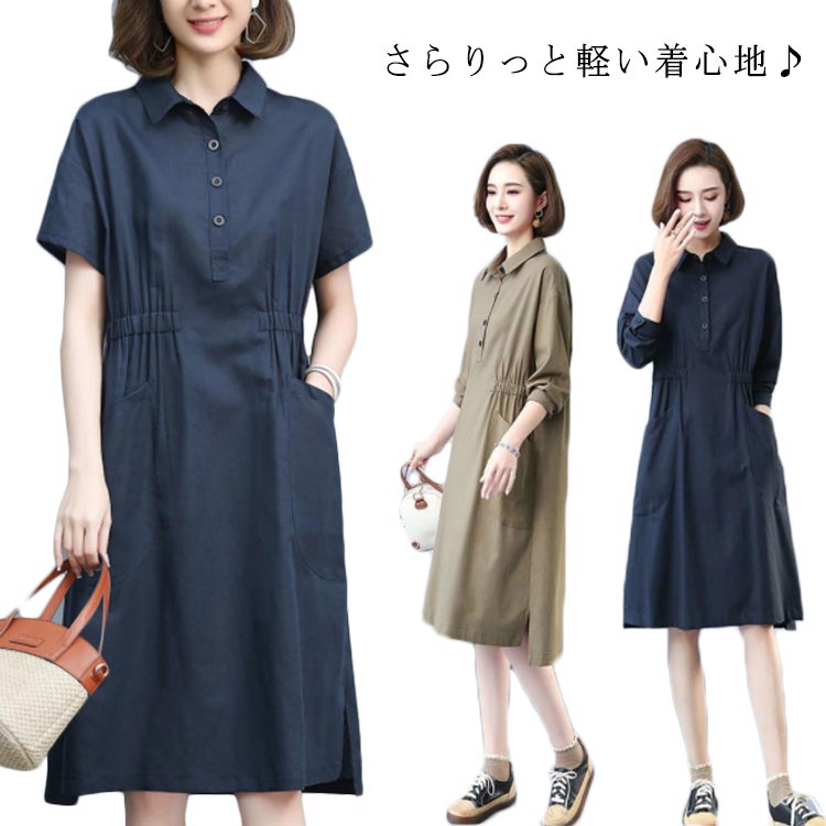 シャツワンピース ロング ワンピース シャツ ネック ワンピース 体型カバーレディースファッション ワンピース