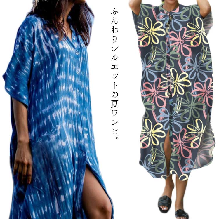 シャツワンピース ロング ワンピース シャツ 体型カバー ライン ワンピース ゆったり リゾートワンピース