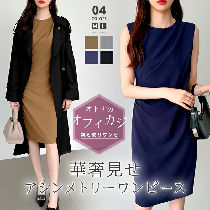/ 大人女子におすすめ ノースリーブワンピース 背中ファスナー 袖なし 着痩せ 裏地あり 入学式 卒業式 入園式 卒園式 エレガント ワンピース夏 M L