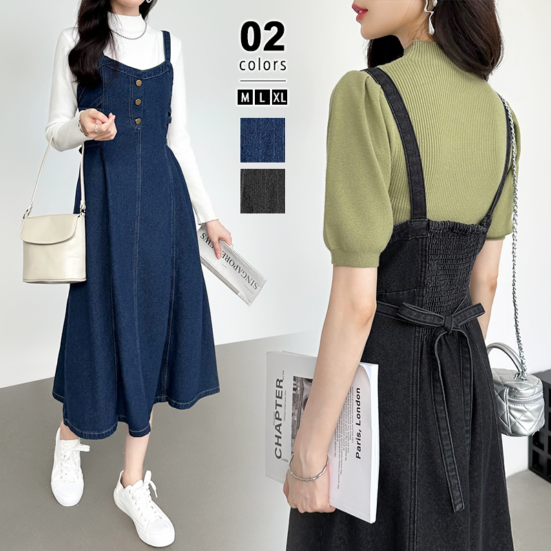 重ね着次第で幅広いな着こなしが楽しめる デニムキャミワンピースレディースファッション ワンピース