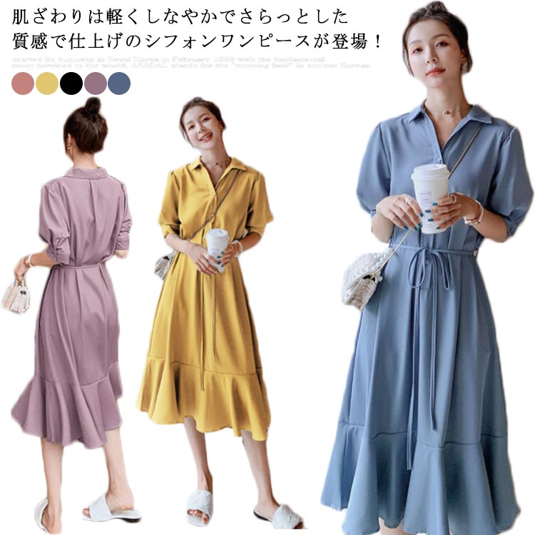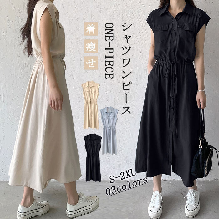 ミモレ丈ワンピース 夏 レディース ワンピース マキシ丈 ミモレ丈 襟付き きれいめ シャツワンピース♪