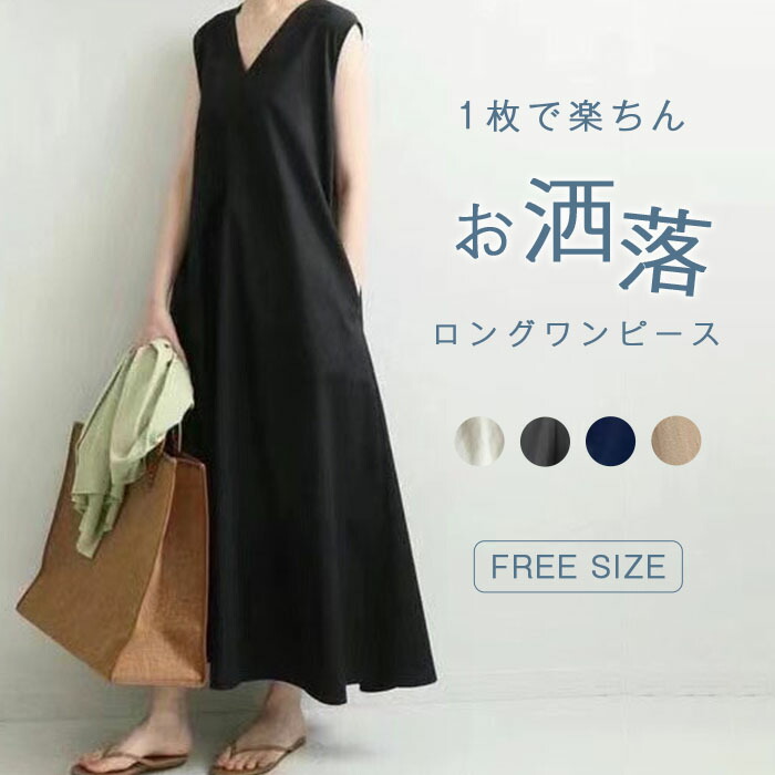 ワンピース 夏 レディース マキシワンピース レディース 夏 ノースリーブ Aライン Vネック ワンピース ノースリーブ ゆったり 体型カバー 大きいサイズ シンプル 30代 40代 50代 母の日