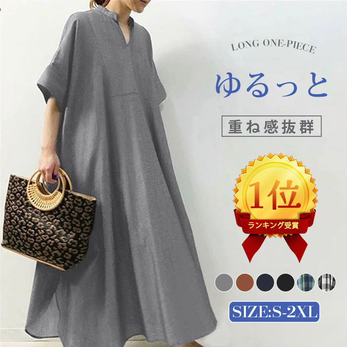 ♪あなたのお気に入りが必ず見つかる多くなカラー展開 ワンピース 夏 半袖 きれいめ ロングワンピース 春 レディース マキシ丈 半袖ワンピース ビッグシルエット♪