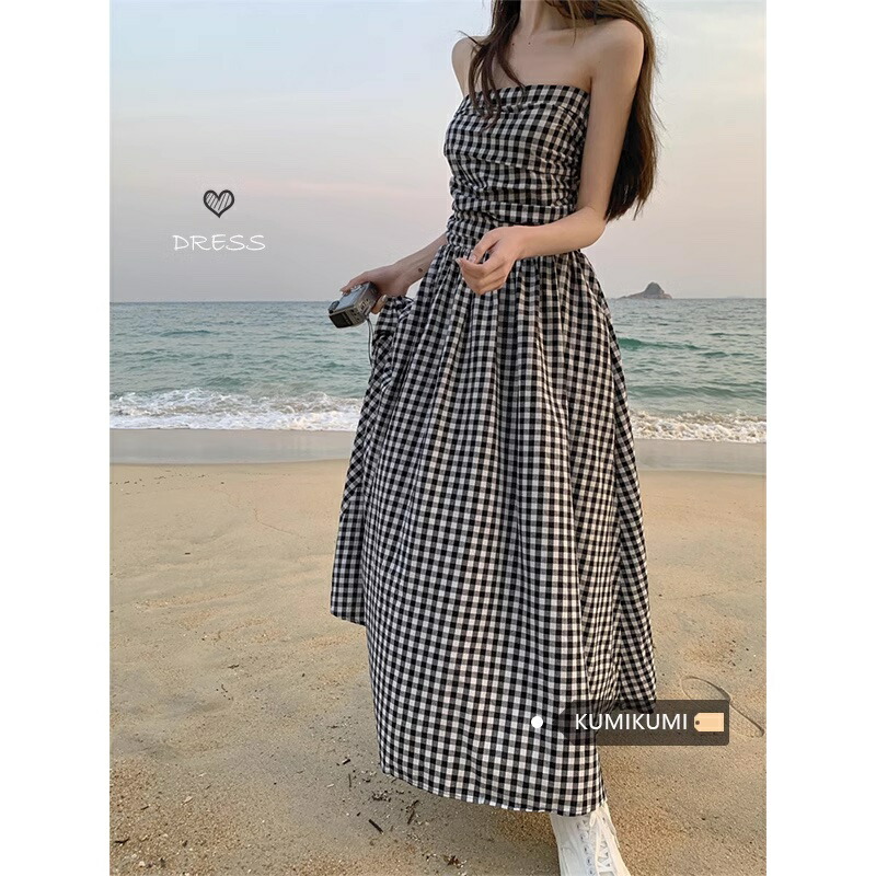 ギャザーフロントベアギンガムワンピース チェック柄 ベアワンピース チューブトップドレス ワンピース. ドレス サマーワンピ レディース. 4698