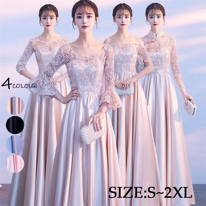 パーティードレス 結婚式 ロングドレス ピアノ発表会 ブライズメイドドレス ワンピース ロング丈 大きいサイズ フォーマル レース ドレス きれいめ 可愛い 二次会 謝恩会 演奏会