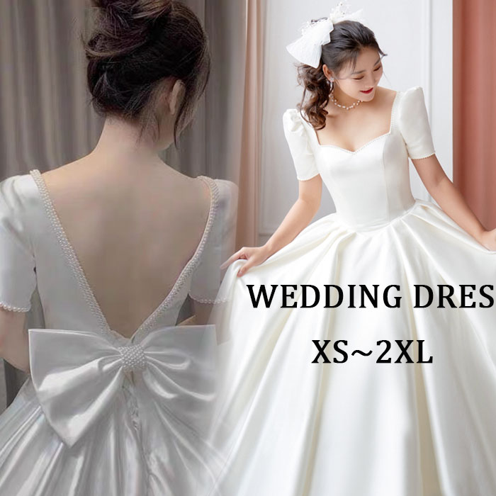 新作 ウエディングドレス レディース 半袖 パフスリーブ ワンピース 結婚式 花嫁 二次会 レース ドレス 少女 女性 腰縛り メッシュ フォーマル パーティー ロングワンピース 大人