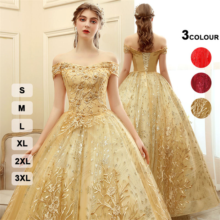 新作 ウエディングドレス レディース オフショルダー 締め上げ ワンピース 披露宴 結婚式 花嫁 二次会 レース リボン ドレス 少女 女性 腰縛り メッシュ フォーマル パーティー