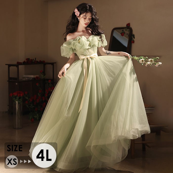 ドレス 大人 ふわふわ ワンピース ピアノ 発表会 ロングドレス オフショルダー 大きいサイズ 小さいサイズ 演奏会 結婚式 母親 大人 レディース