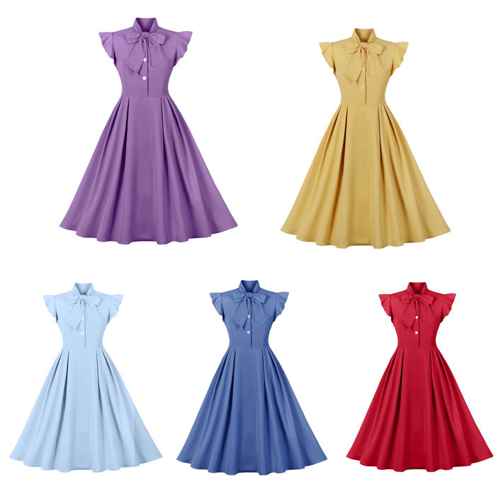 レトロワンピース 5色お揃い スイングワンピ レディース 結婚式 Aライン 袖なし ロカビリー 着痩せ 50年代 お呼ばれ 謝恩会 披露宴 オールシーズン