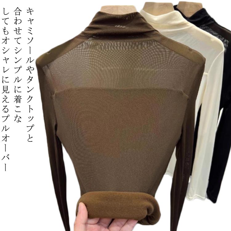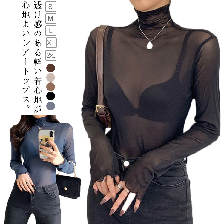 レディース タートル カットソー シアー トップス ハイネック 長袖 シアーカットソー インナー 薄手