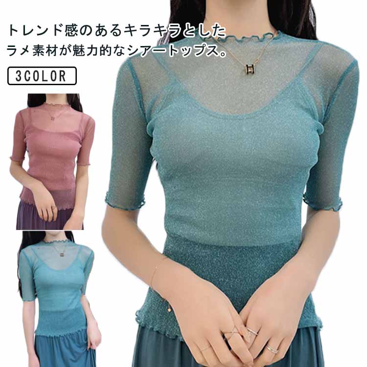 シャツ インナー 透け感 シアートップス 卒業式 シアーシャツ カットソー 日よけ 無地 薄手 フィット 重ね着 レイヤード おしゃれ ダンス 春夏