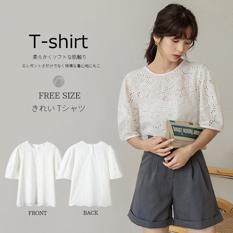 半袖 涼しい Tシャツ 無地 夏服 夏物 体型カバー ホワイトレディースファッション トップス Tシャツ カットソー