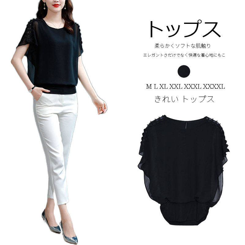 ブラック 半袖トップス 半袖 涼しい シャツ 無地 夏服 夏物 体型カバー ブラックレディースファッション トップス シャツ カットソー