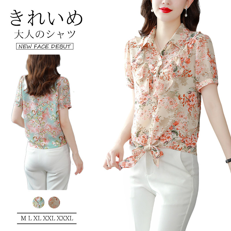 花柄シャツ 無地 夏服 夏物半袖 涼しい シャツ 体型カバー ピンクレディースファッション トップス シャツ カットソー