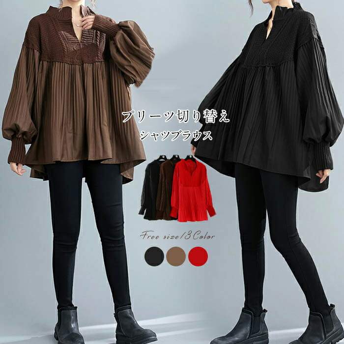 異素材ドッキング ニット セーター トップス カットソー ネック レディース ニット切り替えシャツブラウス 長袖 レディース シャツ ブラウス レディース 長袖 ブラウス