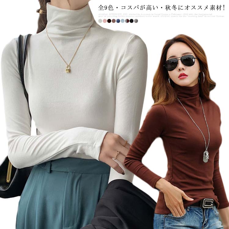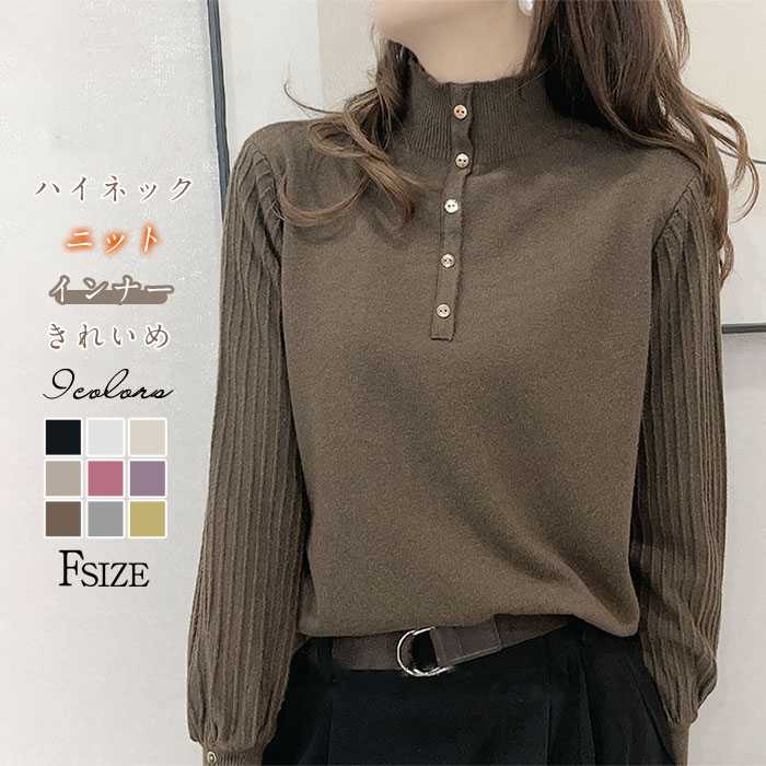 長袖 レディース きれいめ 春 秋 冬 ハイネックカットソー シャツ レディース 長袖 ニット 春 秋冬 インナー 無地 ニットセーター プルオーバー