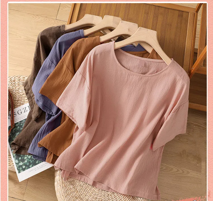 シャツ レディース トップス リネンtシャツ スリット リネン 綿麻 半袖夏 無地 プルオーバー 大きいサイズ