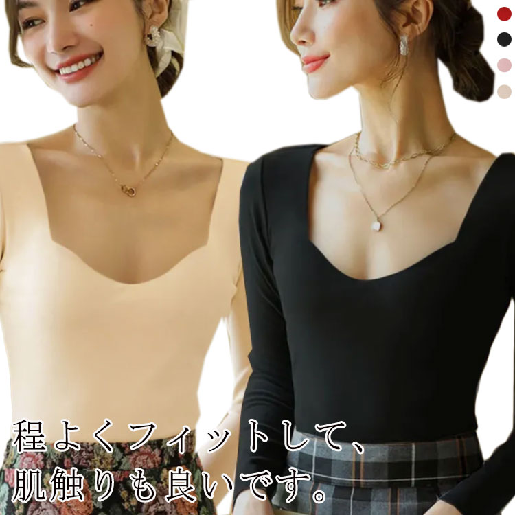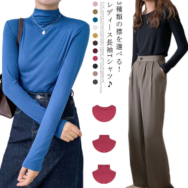 3種類の襟を選べる レディース インナー ロンT 薄手 春 夏 秋 冬 おしゃれ 流行 可愛い シンプル きれいめ カジュアル 無地 レーヨン 長袖 ハイネック