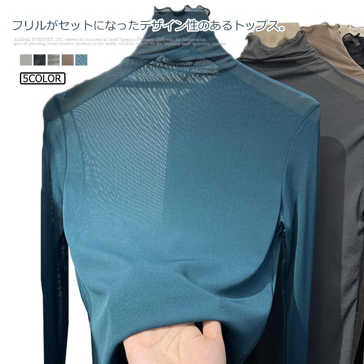 シアートップス シースルー 透け感 レイヤード コーデ 重ね着 薄手 きれいめ かわいい セクシー 人気 無地 大きいサイズ 透け感 春プリーツ レディース 長袖 ハイネック