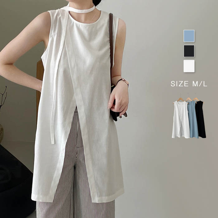 ノースリーブ ブラウス レディース 夏 無地 スリット チュニック アシンメトリー リポン ノースリーブ 切り替え トップス ノースリーブブラウス カジュアル おしゃれ 体型カバー ゆったり