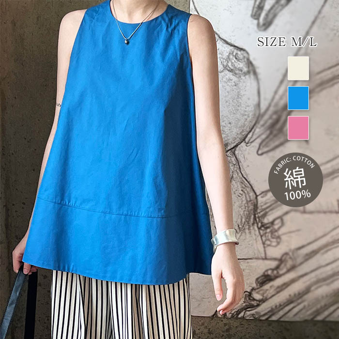 綿100% ノースリーブ ブラウス レディース 夏 無地 コットン ノースリーブ タンクトップブラウス トップス ノースリーブブラウス カジュアル