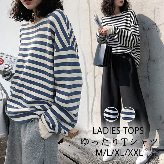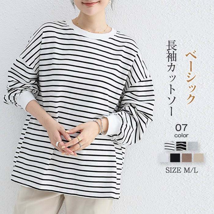 新作 tシャツ カットソー レディース 長袖 春秋 柄 ボーダー 無地 プルオーバー チュニック コットン 綿混 トップス ボーダーTシャツ 無地tシャツ レディースカットソー