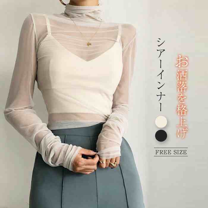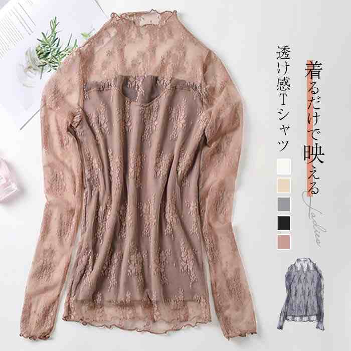こなれ 裏地有り レースシースルー モックネックインナー 清楚 肌見せ セレブ 清涼感 抜け感 メッシュ生地 お洒落 可愛い レイヤード シアーブラウス 20代 30代 40代 50代