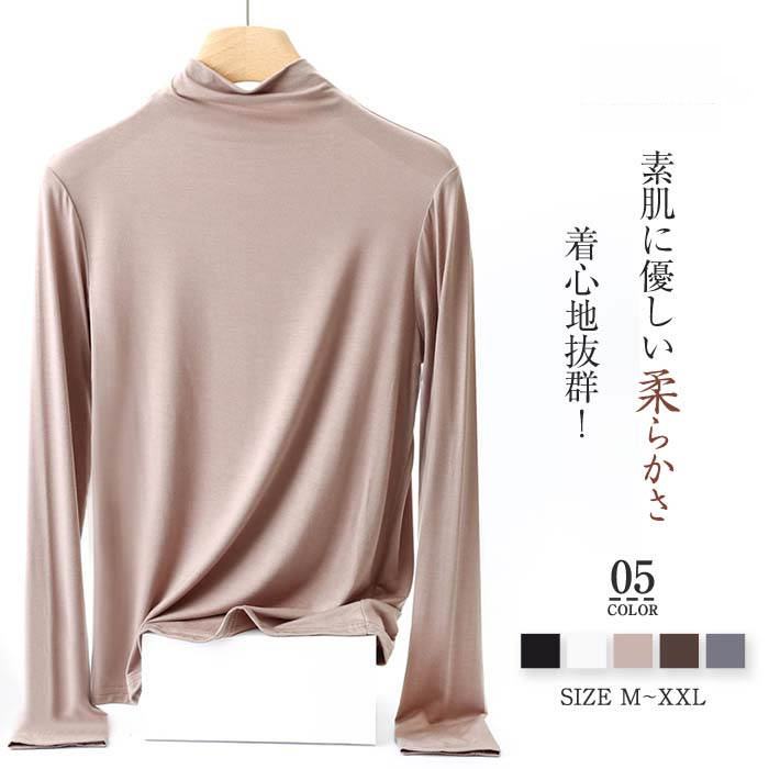 シャツ カットソー レディース 長袖 トッ プス 春 秋 冬 春秋冬 無地 インナー ハイネック タートルネック 透けない 大きいサイズ 細身 シンプル 重ね着