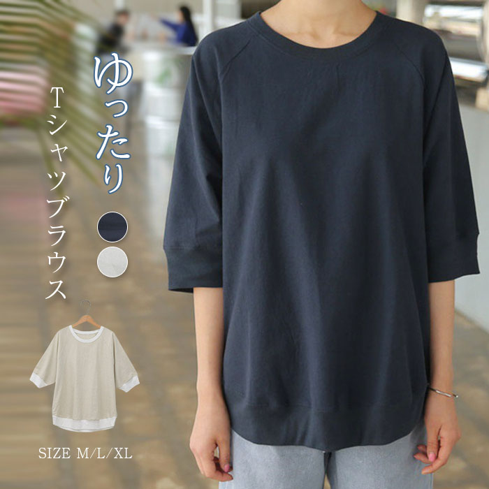 シャツ レディース 半袖 トップス レディース Tシャツ シャツ 夏 カットソー 春夏 プルオーバー カジュアル 普段着 薄手 涼しい 体型カバー ゆったり クルーネック 切り替え