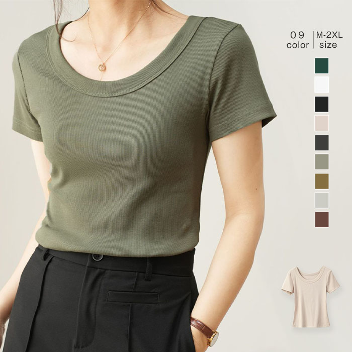 tシャツカットソー レディース 半袖 夏 tシャツ 無地 ベージュ 黒 半袖tシャツ カットソー トップス プルオーバー クールネック ショート丈 タイト